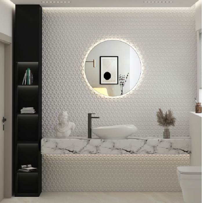 *Use a back-lit mirror against textured wall tiles to highlight the patterns through shadows and light.